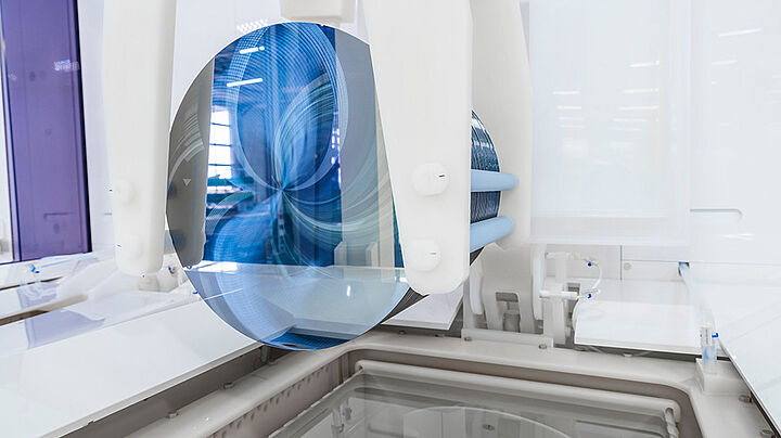 Die Wafer werden während des Prozesses in eine Ätzlösung getaucht oder mit dieser benetzt. Die Chemikalie reagiert gezielt mit den ungeschützten Bereichen des Materials, während maskierte Bereiche zuverlässig geschützt bleiben. Da nasschemische Ätzverfahren in vielen Fällen ein isotropes Ätzverhalten aufweisen, wird der potenzielle seitliche Materialabtrag bereits in der Prozessentwicklung berücksichtigt.