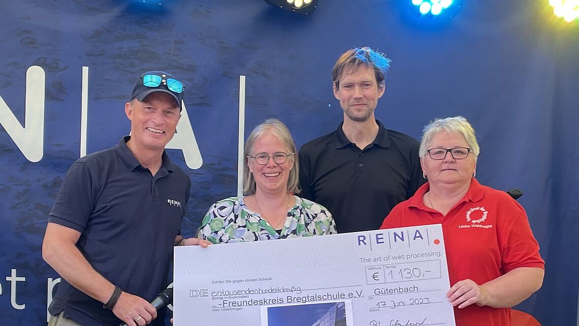 Für die musikalische Unterhaltung war ebenfalls bestens gesorgt. So trat eine eigene RENA-Band (alle drei RENA-Mitarbeiter/innen), besetzt durch Miriam Brugger (Gesang), Helmuth Of (Gitarre und Gesang) und Ulf Spitzer (Kontrabass) auf und begeisterten die Gäste mit ihrem musikalischen Können. Bei der Jubiläums-Tombola konnte man neben einem Familieneintritt für das Galaxy Schwarzwald, als Hauptpreis einen Familieneintritt für den Europapark Rust gewinnen. Das war Anreiz genug, um kräftig Lose zu kaufen. So kamen insgesamt 1.130,00€ zusammen. Der gesamte Erlös wurde an den Förderverein der Bregtalschule in Furtwangen gespendet.