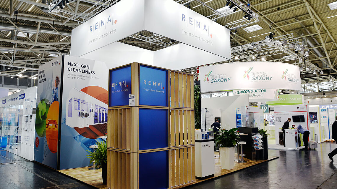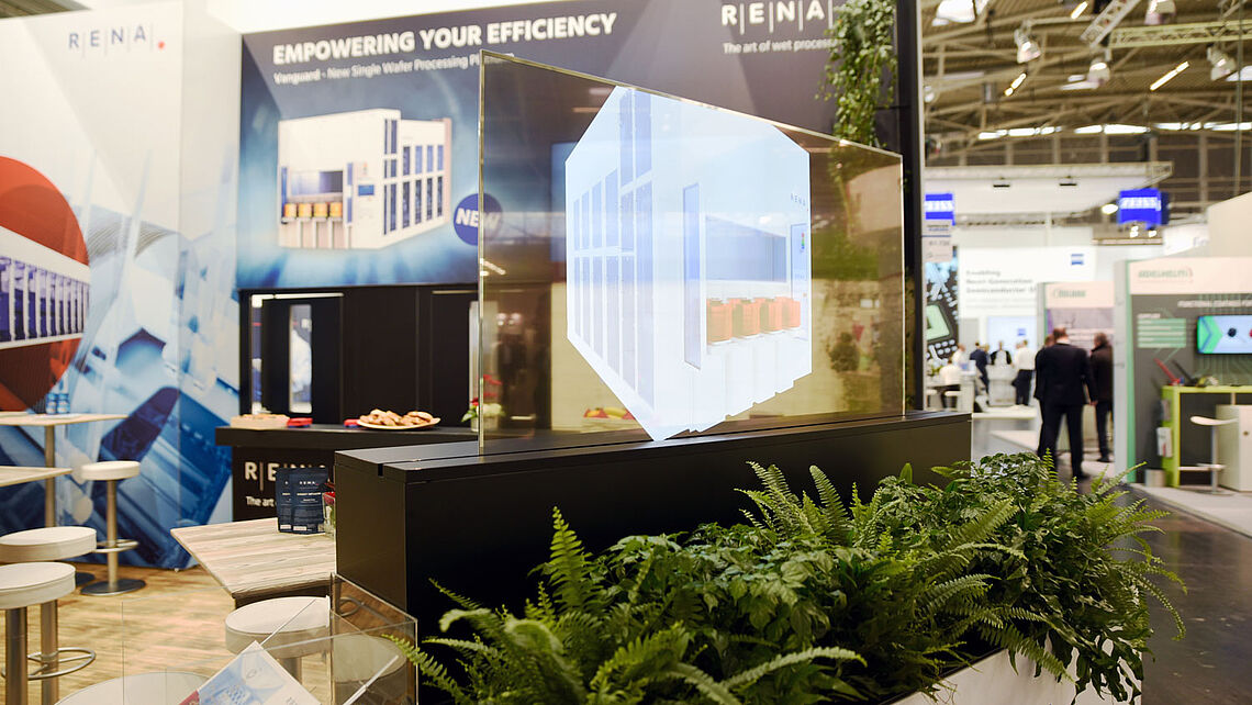 A transparent display that impressively visualized our new Vanguard system – modern, clear, and attention-grabbing. And an illuminated miniature model that made single-wafer technology tangible. Vanguard is a fully automated single-wafer system for wet chemical cleaning, rinsing, etching, and drying of 300 mm wafers.
