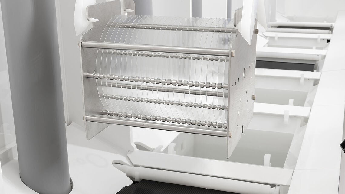 The RENA BatchGlass N50 is an advanced solution engineered for processing glass wafers in alkaline media, with a focus on high-precision via formation. Specifically developed for the fabrication of blind vias and through-glass vias (TGVs), this system meets the growing demand for intricate microstructuring in glass substrates.